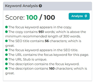 SEO insights built directly into Antilles CMS